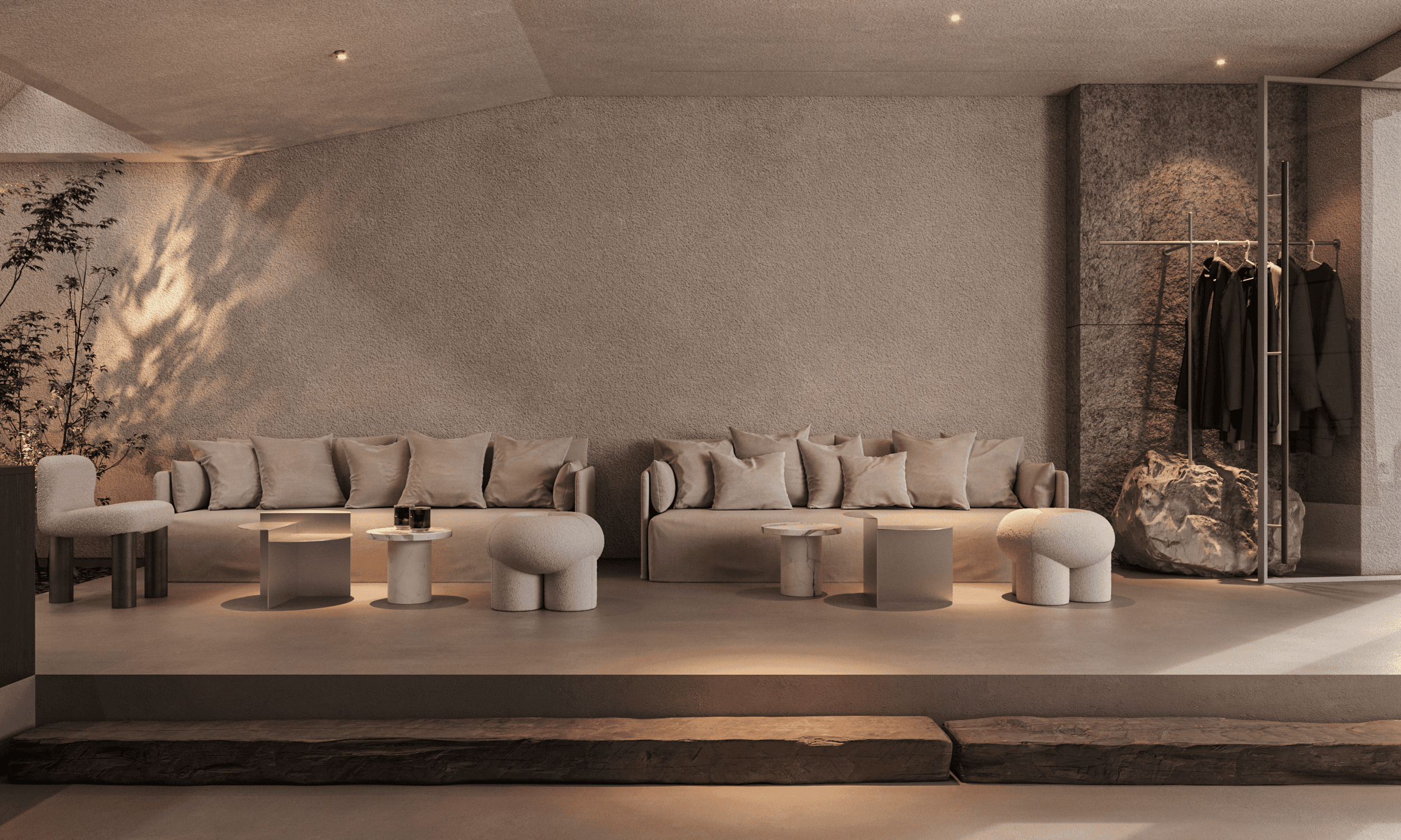 The design is inspired by the Japanese philosophy of minimalism, where every detail has meaning and fits into a harmonious composition. A warm palette of wooden textures is complemented by soft textiles, creating a cozy and inviting atmosphere. Geometrically refined furniture and well-planned zoning make the space not only visually appealing but also highly functional.