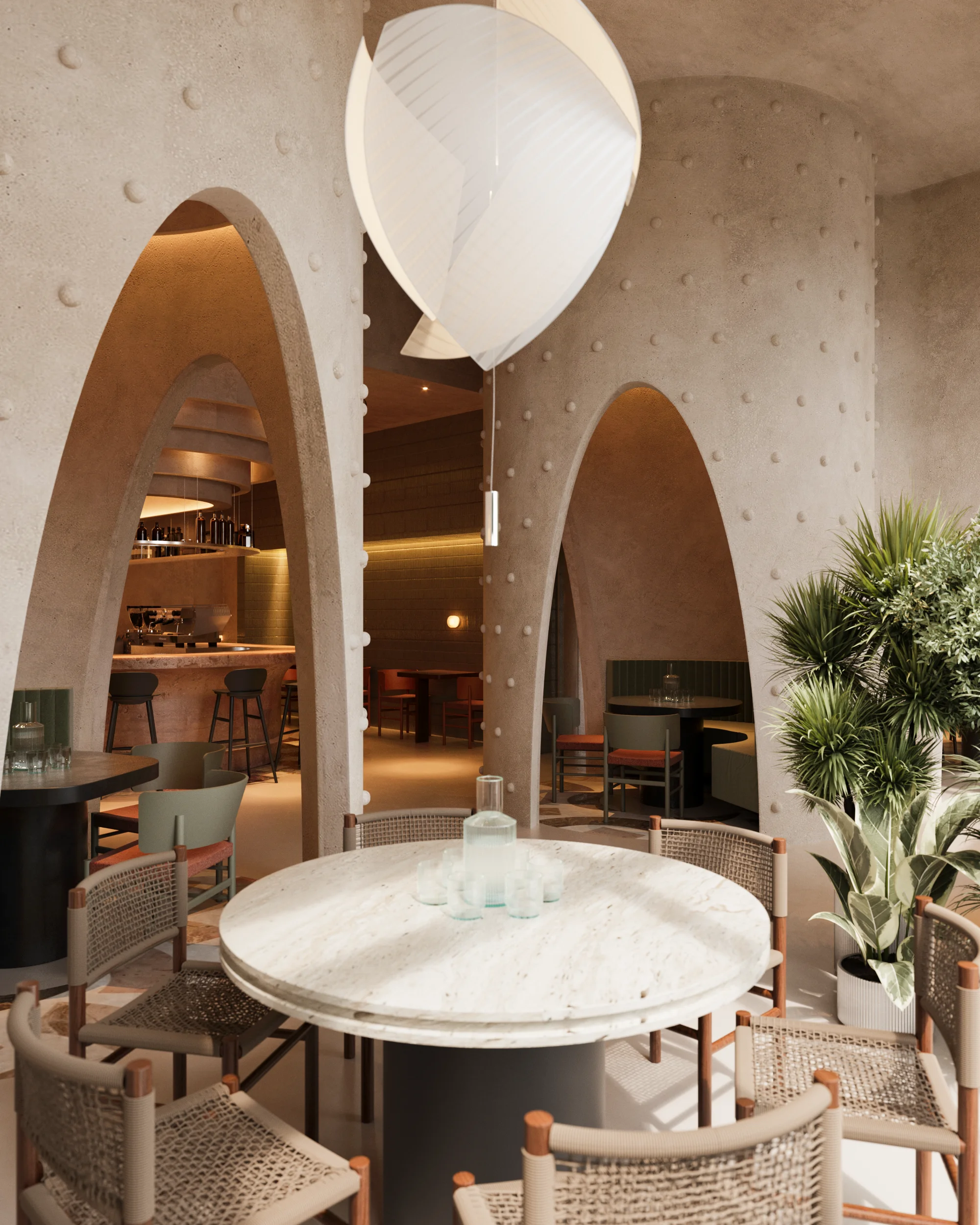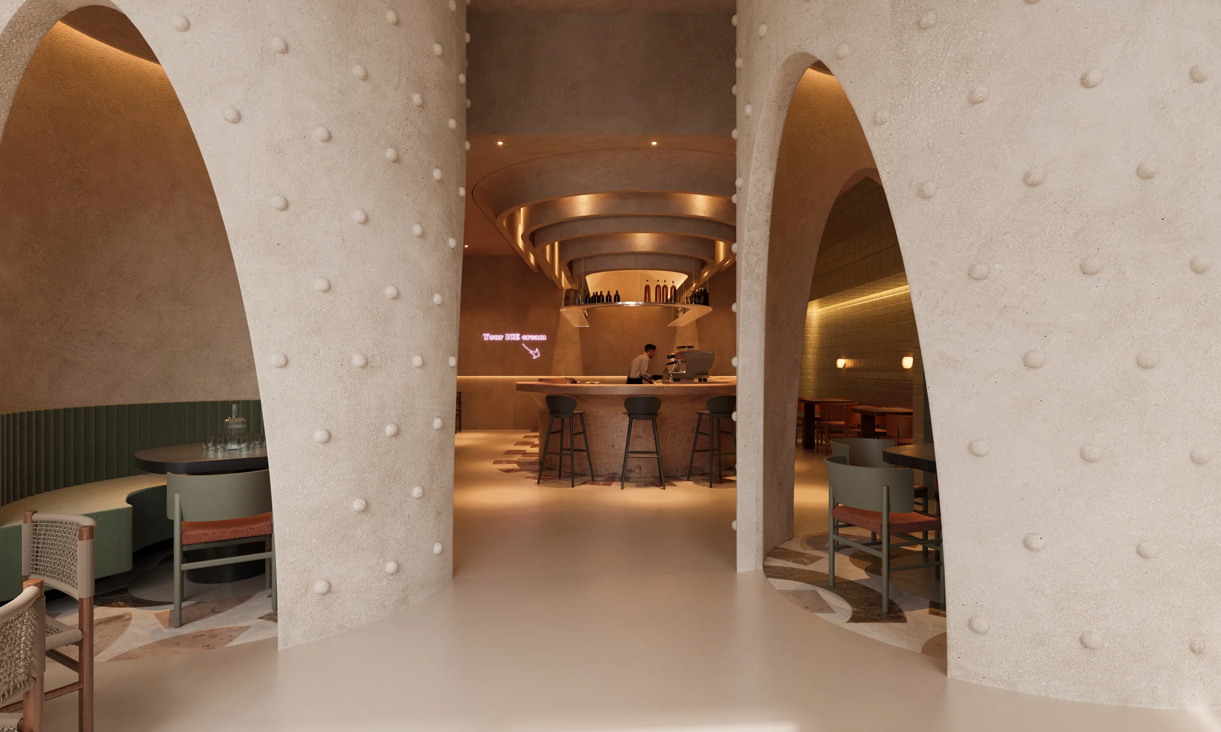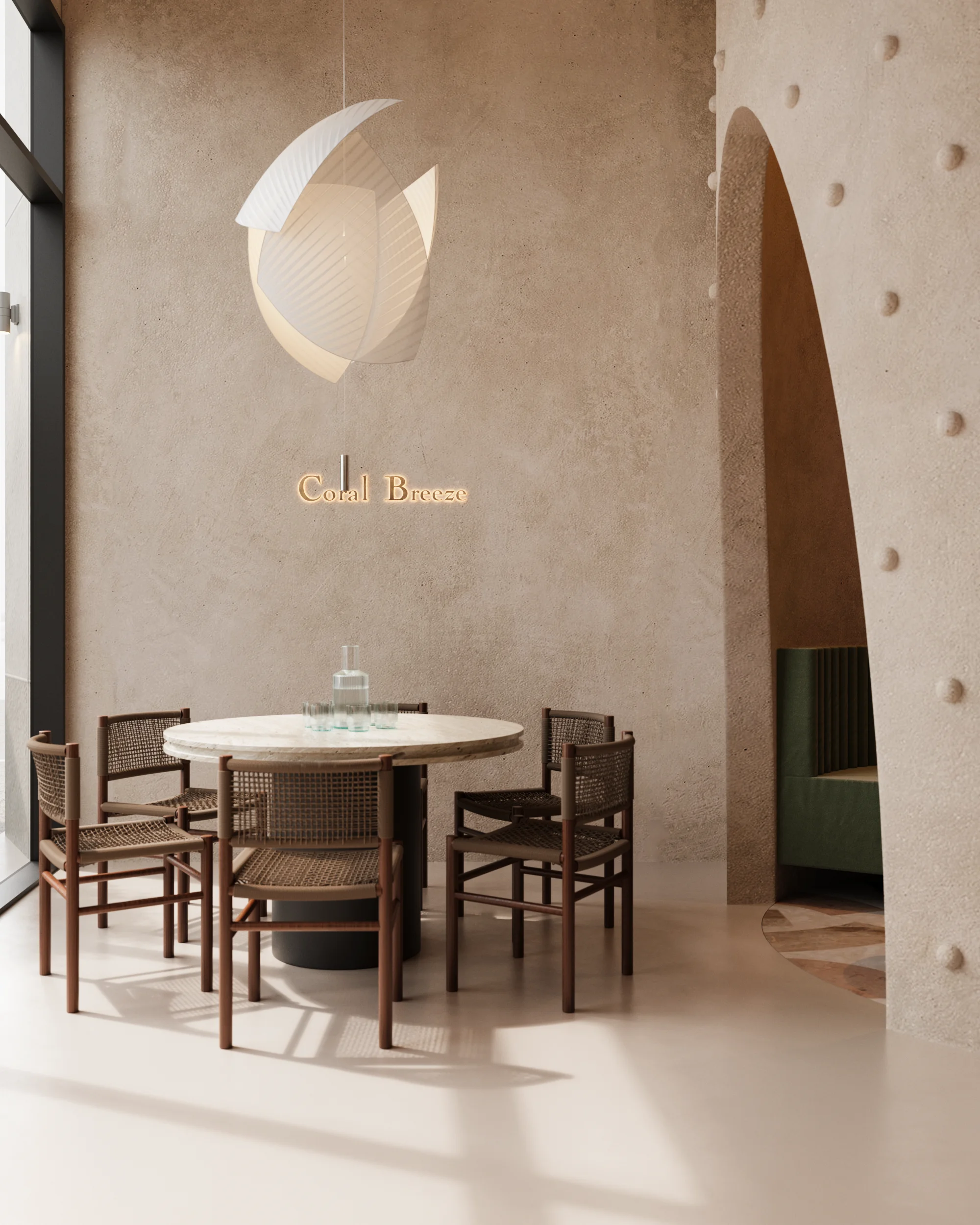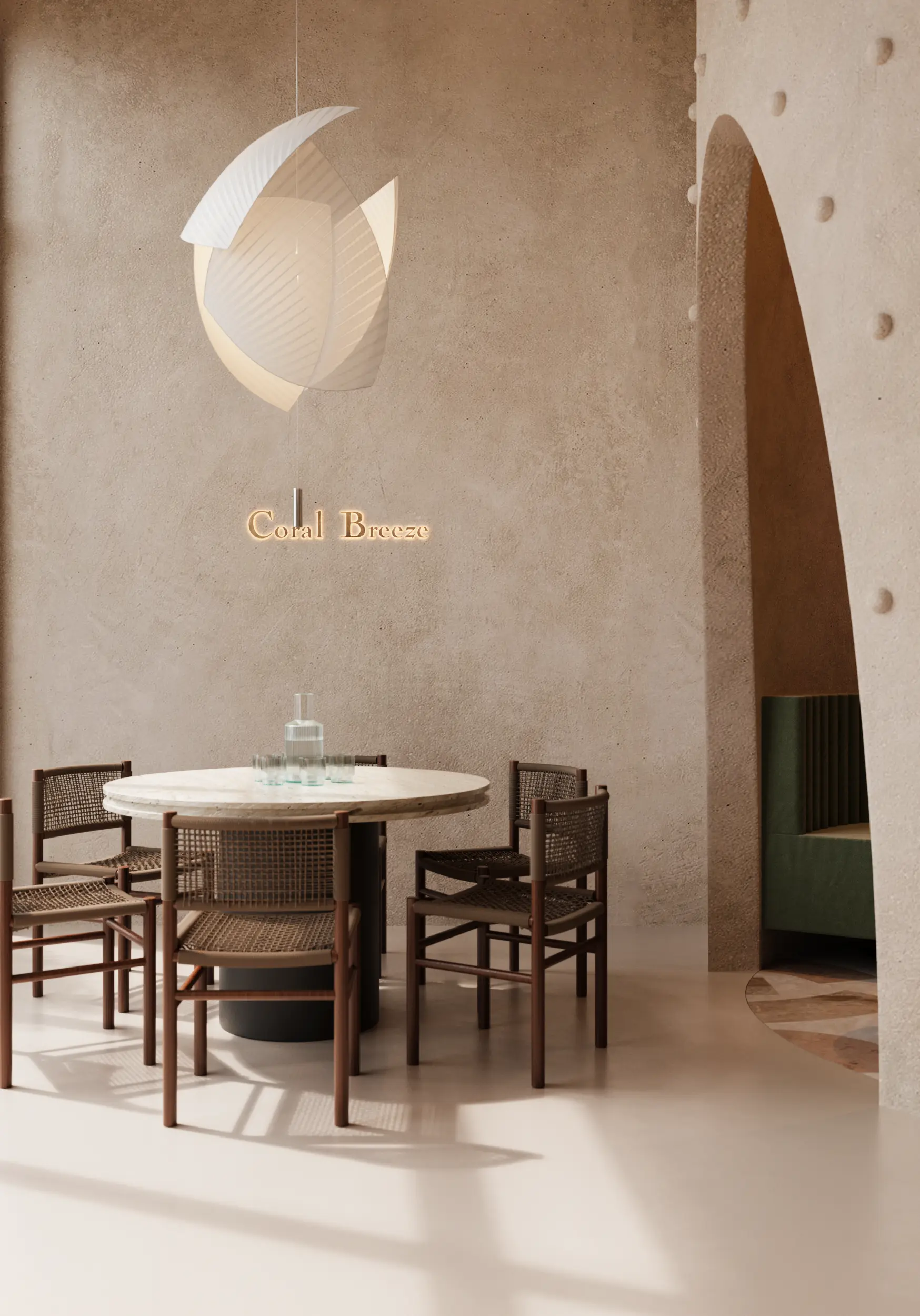 Coral Breeze café is a modern space filled with light, warmth, and a sense of serenity. The design is inspired by the natural tones of sand, stone, and sunlight, creating an atmosphere of ease and comfort. Every detail is thoughtfully curated to allow guests to enjoy privacy or engage in pleasant conversations in a stylish yet unobtrusive setting.