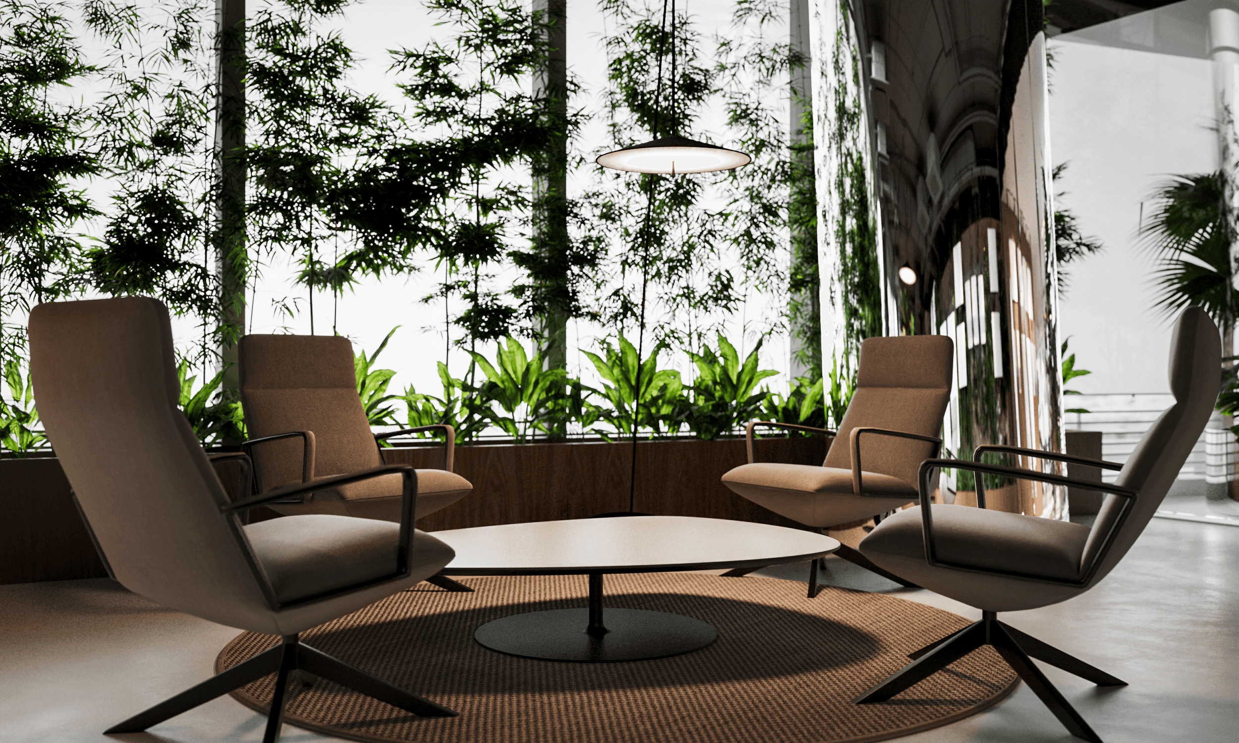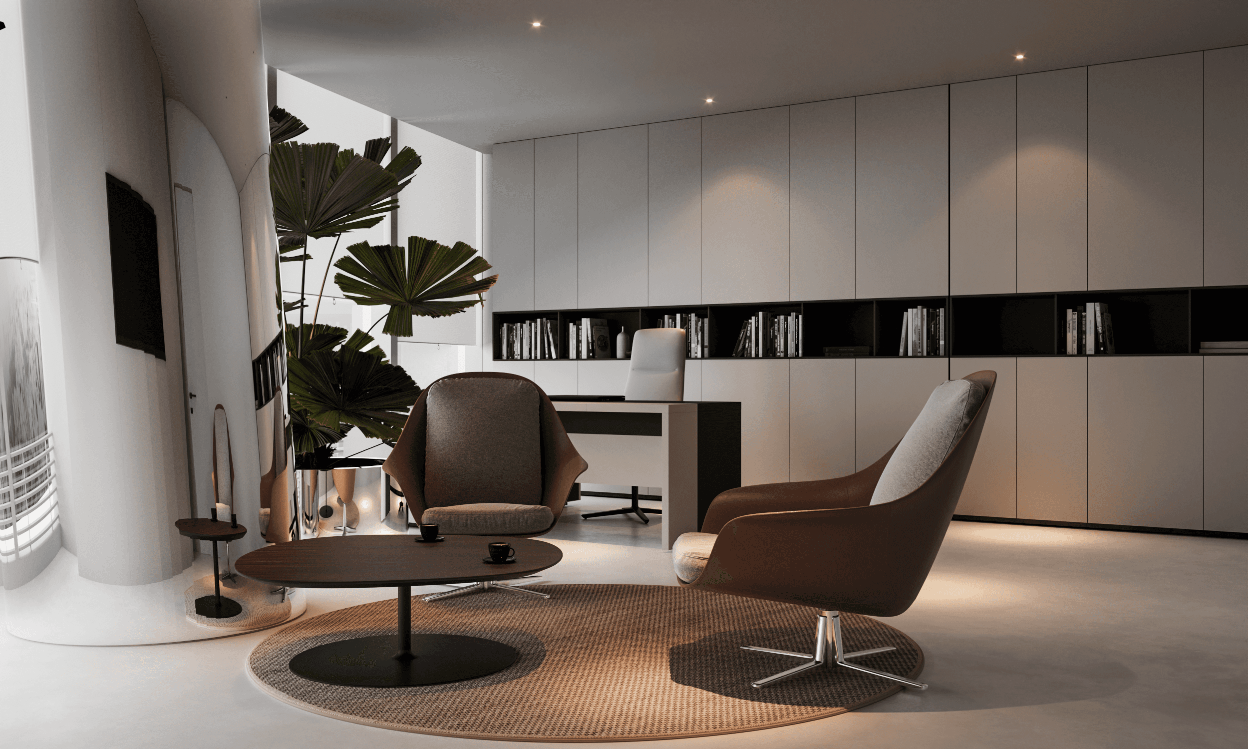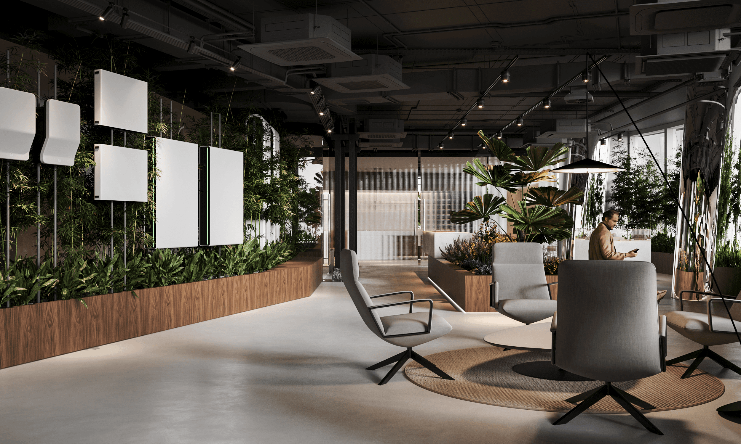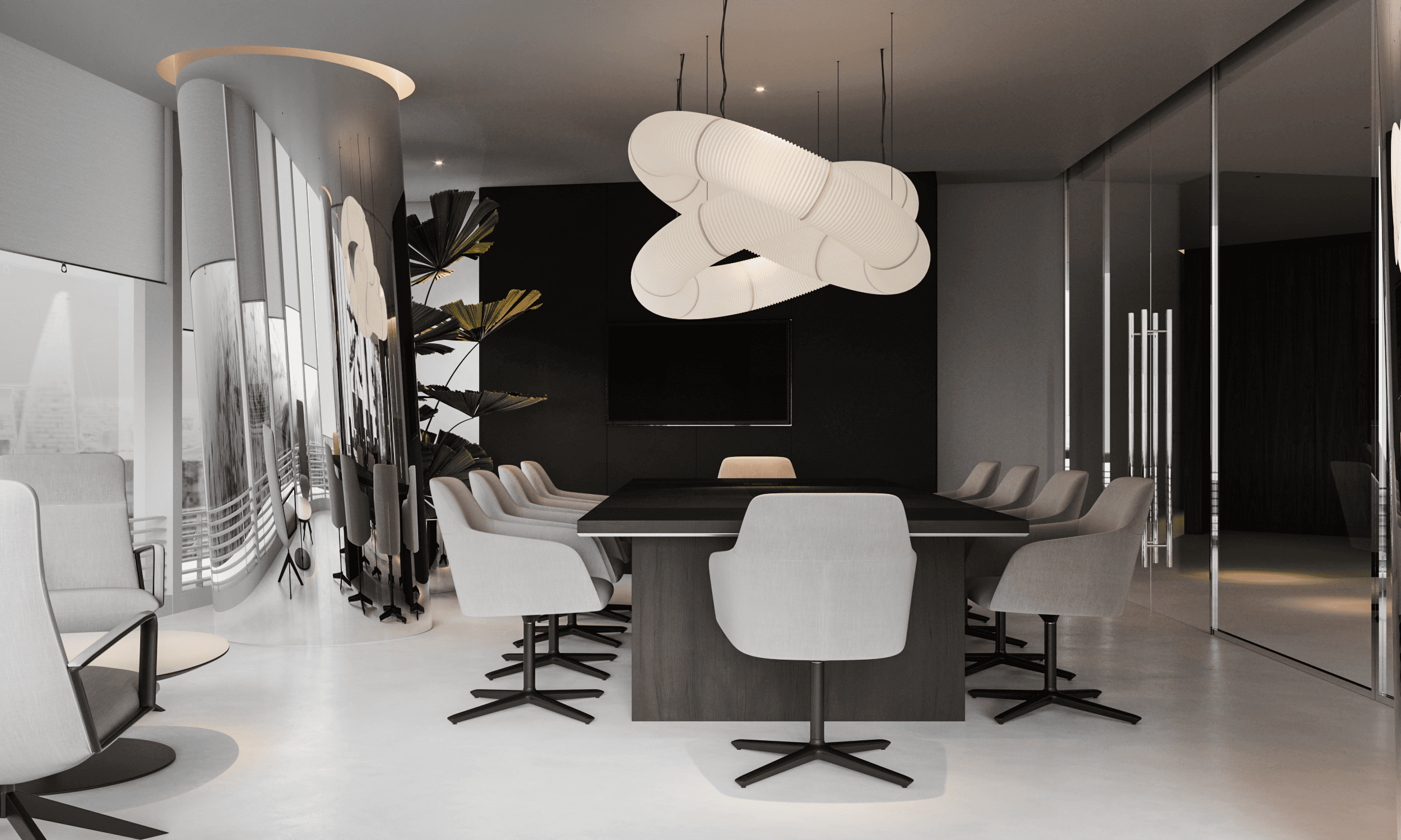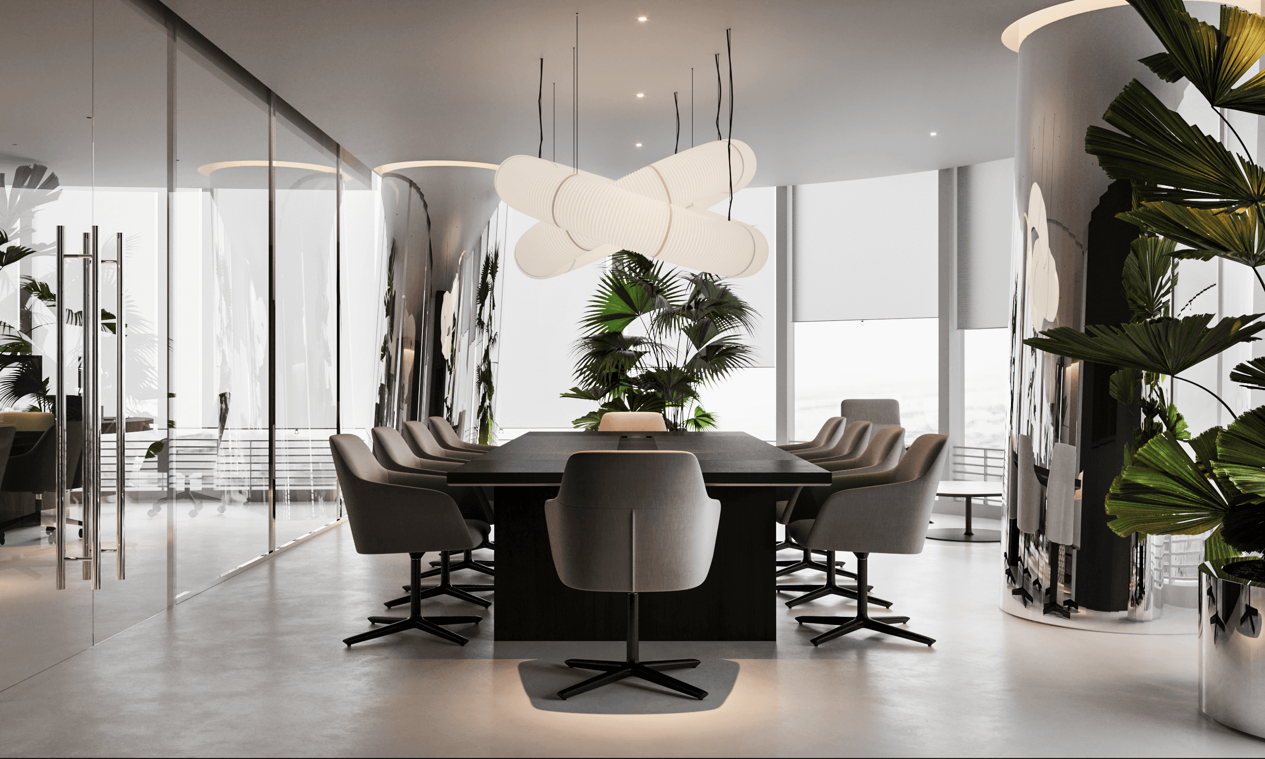 The office interior for PANECO, designed by our studio, is a prime example of a modern workspace that combines elegance, functionality, and natural aesthetics.